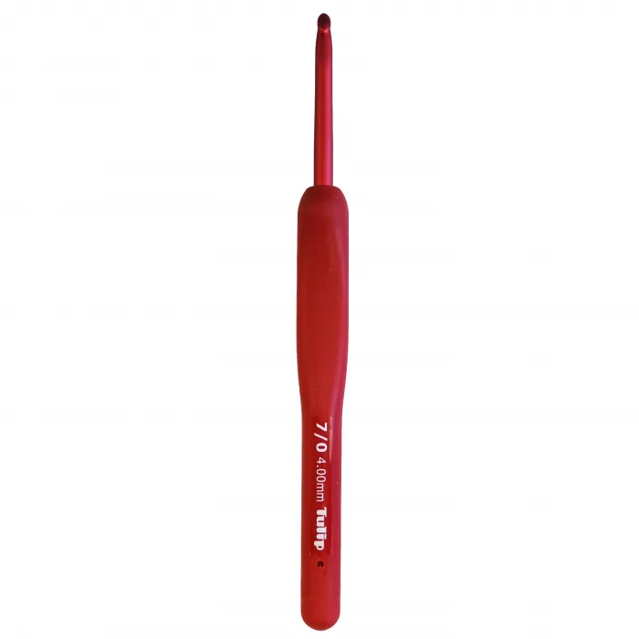 The Tulip ETIMO Red Crochet Hook with a smooth feel and cushioned grip are easy on hands to prevent fatigue!