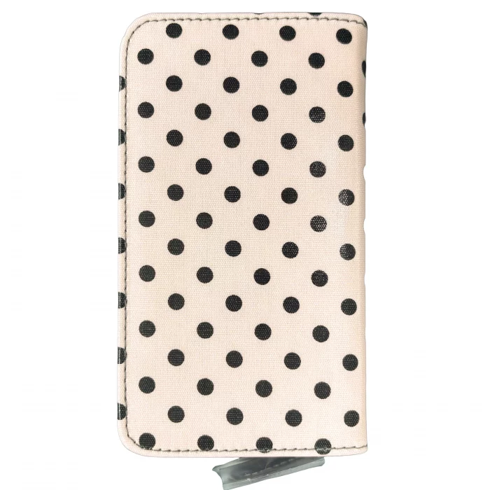 Playful Polka Dot Aesthetic: Finished in a vibrant pink with a classic white dot pattern and a secure snap fastening for a touch of elegance.